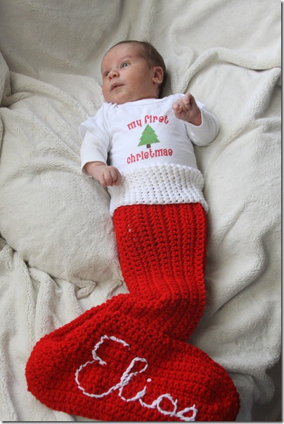 Or as real a bath as you can have in the kitchen sink. Eli had his first real bath on Dec 11. As you can see, he didn’t really enjoy it.